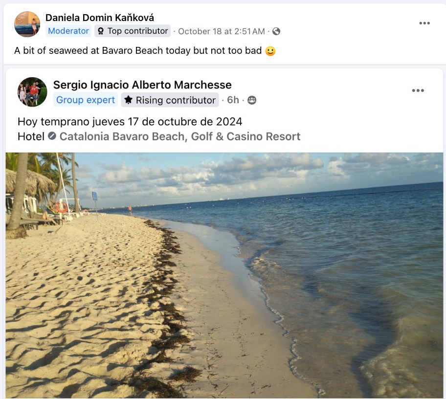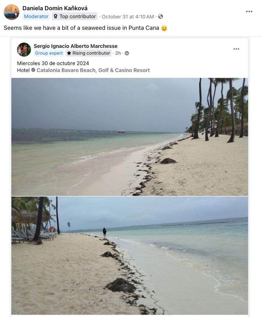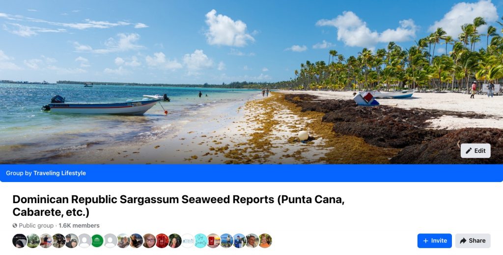 Dominican Republic Sargassum Seaweed Reports (Punta Cana, Cabarete, etc.) is a Facebook monitoring group with more than 1.5k members who share photos, comments, and updates on the sargassum situation on Dominican beaches. Join to stay in the loop.